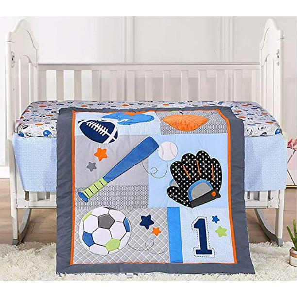 Choose from Same Day Delivery Drive Up or Order Pickup plus free shipping on orders 35. Features navy blue and gray fabrics with appliqued baseballs basketballs and footballs and is the perfect fit for your babys crib Care for Baby Boy Sports Crib Bedding. Brandream Sport Crib Bedding Sets for Baby Boys Best Athlete No1 Champ Baseball American Football Rugby Basketball Hockey Soccer - Outdoor Balls Nursery Set Blue Gray. Shop Target for sport crib bedding you will love at great low prices. PRE-OWNED Lambs Ivy Peanuts SNOOPY SPORTS Baby. The crib bedding set comes complete with one quilt 36 X 45 one 100 cotton fitted crib sheet one 4-sided crib skirt one plush minky football and a. 47 out of 5 stars. 1000 - 25580 Find great deals on the latest styles of Sports theme crib bedding. Sports Baby Bedding Crib Sets for the Littlest Fan Go Team Go.
