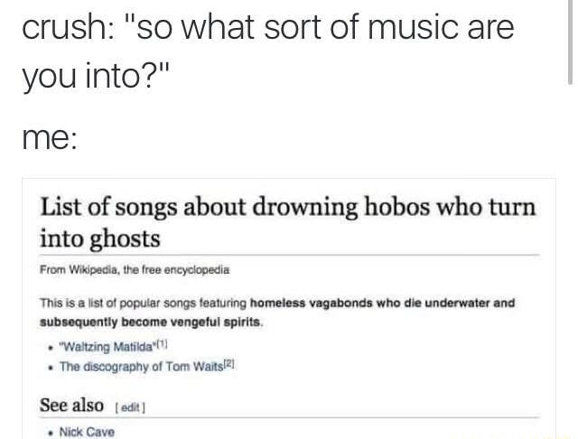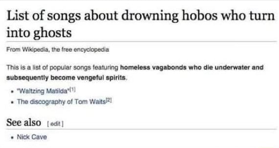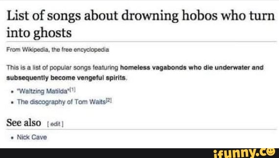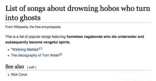 List Of Songs About Drowning Hobos Who Turn Into Ghosts