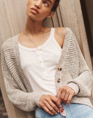 Youll be warm and cozy wearing this Marled Cardigan. She comes in a marled icy blue and nude wide rib sweater knit. Ad Update your closet today.