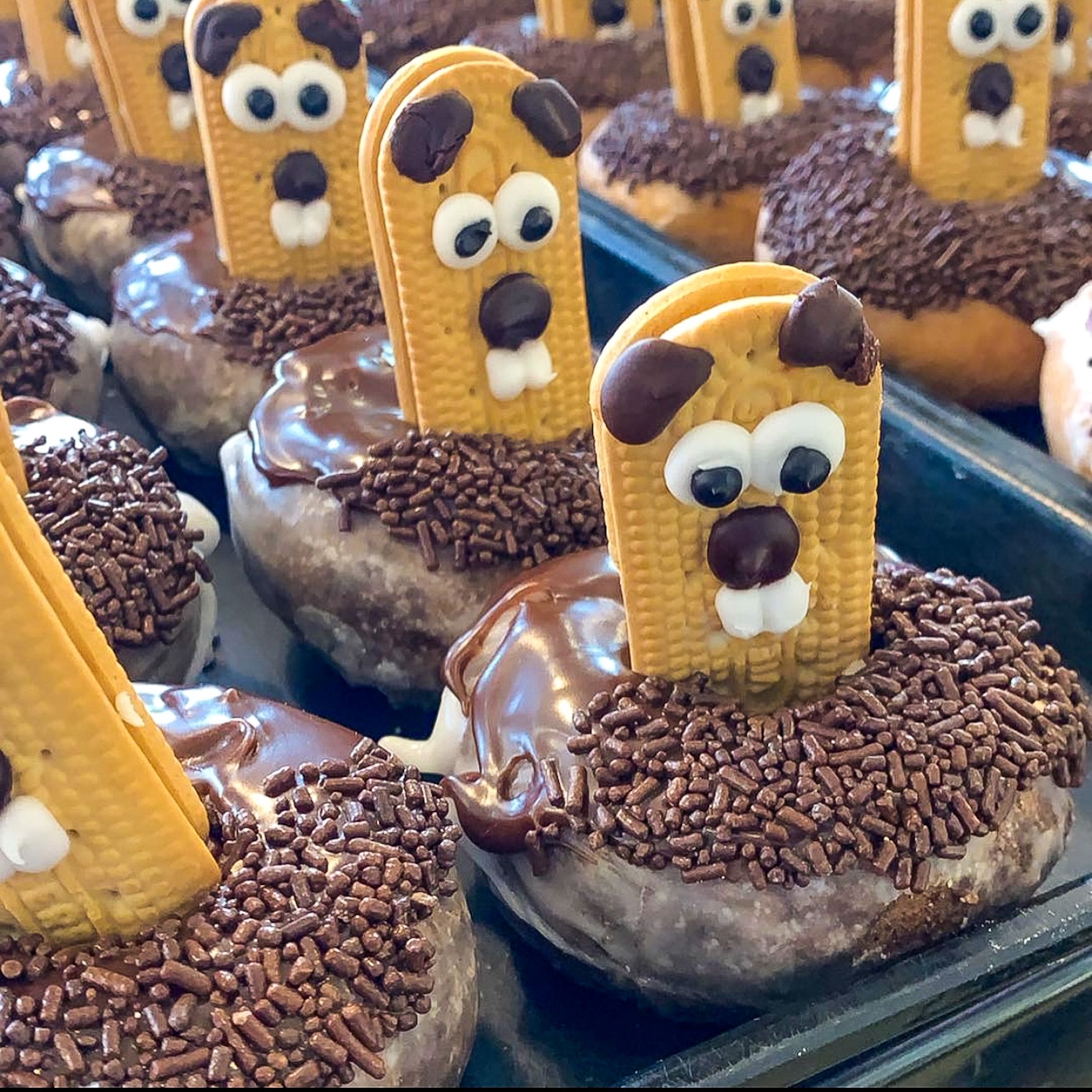 I mean predicting weather based off a fat rodent kinda nuts but any excuse to make some fun snacks right. Groundhog Day Donuts Mini Powdered Chocolate Donuts we like Tastykake Scooby-Doo Graham Snacks Mallow Bits Mini Chocolate Chips Toppers Chocolate Cookie Frosting Betty Crocker Chocolate Spinkles. Make Groundhog Day donuts HERE at.